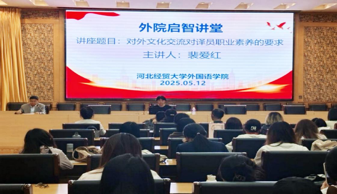 5月12日下午,一场别开生面的讲座在公司会议中心举行。河北省杂技团演艺有限公司译审、党总支副书记裴爱红以《对外文化交流对译员职业素养的要求》为题,为emc易倍全体师生带来了一场精彩分享。本次讲座由emc易倍张润经理主持并作总结发言,100 余名师生到场聆听。
