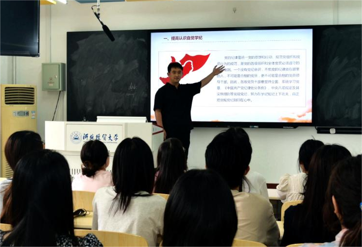 为推动党纪学习教育走深走实,620日下午,emc易倍党委书记仇静莉全体行政教职工讲授党纪学习教育专题党课。
