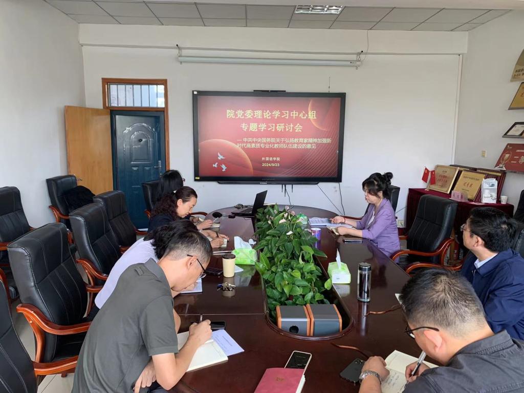 她指出,要准确把握其政治意义、理论意义和实践意义,教育引导全院师生将思想和行动统一到习近平总书记重要讲话精神和党中央关于建设教育强国的决策部署上来,科学规划公司的改革举措,将学习成果转化为推进公司高质量跨越式发展,贡献外院力量。