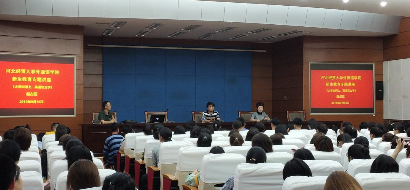 赵占亚以《大学如何上,英语怎么学》为主题分为上下半场进行讲解。他在上半场围绕大学如何上,向新生提出健康、理想、自律、吃苦、失败、奋斗六个关键词,引发新生对大学阶段应具备怎样的理想信念、精神状态和能力素质的思考,并结合自身经历、励志故事等阐述了这六者的关系及其重要性,引起新生共鸣,为新生树立正确的学习生活观念;下半场围绕英语怎么学,与新生分享自身从事英语教学30年在英语听力,阅读,词汇,语法等方面积累的经验和方法,并针对英语学习中的惯性问题,提出自己的独特见解,传授学习技巧,使新生醍醐灌顶,茅塞顿开。两个多小时的讲座,赵占亚旁征博引、引经据典,语言风趣幽默,阐释生动形象,内容循序渐进,逻辑清晰,条理分明,讲座过程中师生不时互动,现场气氛活跃。