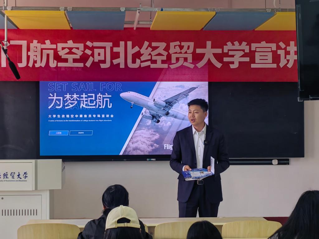 3月19日下午,emc易倍在四教204召开北京壹号门航空石家庄分公司专场宣讲会,宣讲会由壹号门航空服务技术培训中心负责人李继永主讲。