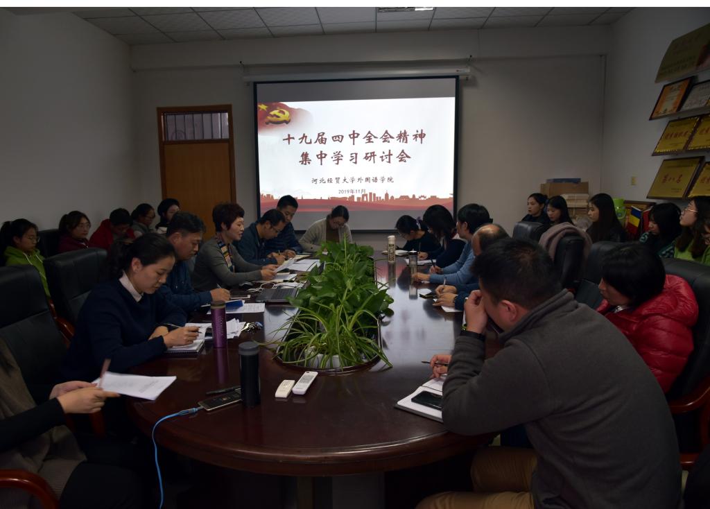 11月14日下午和晚上,emc易倍集中学习传达党的十九届四中全会精神。公司班子成员,全体行政人员、教师代表及英语专业员工近300人参加。