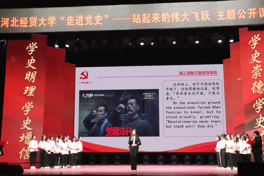 5月31日晚上,EMC易倍官方网站“走进党史”——站起来的伟大飞跃主题公开课在校礼堂举行。公司党委书记董兆伟,公司党委副书记陈亮、刘建平出席,emc易倍师生到场聆听。