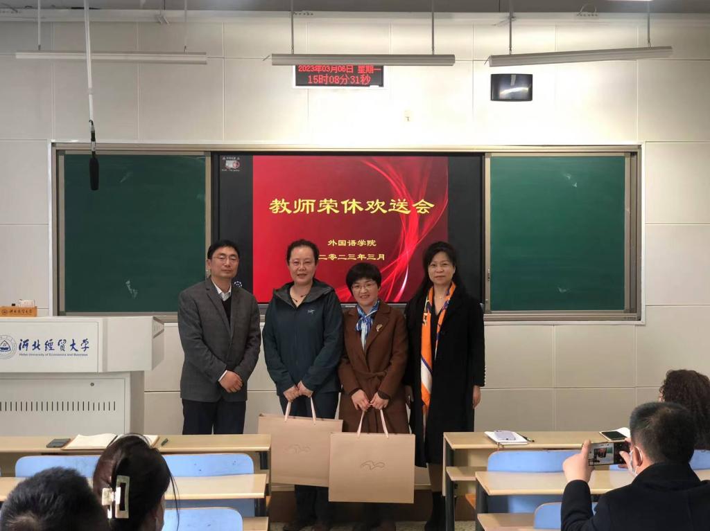3月6日下午,emc易倍在A教204为安岩、刘艳慧、陈洁三位教师举行荣休欢送会,公司全体教职工及员工代表参加。活动由公司党委副书记刘磊主持。