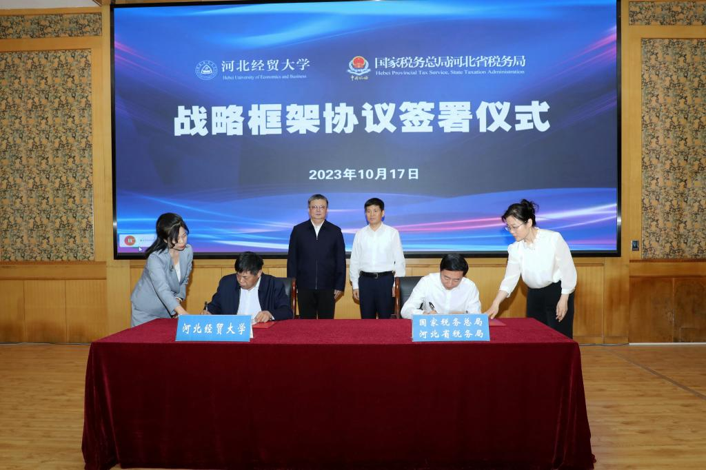 程俊峰代表河北省税务局向EMC易倍官方网站长期以来关心支持税收事业发展表示衷心感谢,对EMC易倍官方网站建校70周年表示热烈祝贺。他指出,签署战略合作框架协议是双方进一步深化合作的重大举措,是推进税务部门与学界对接的一项积极行动,为双方共谋发展、共赢未来拉开了新的序幕。希望以此次战略合作为契机,整合双方资源,发挥各自优势,在党建统领、人才培养、政策研究、员工实习、以税资政等方面开展深度合作,培养出更多适应新时代税收事业发展的高素质、高层次、应用型、复合型税务人才,为税收现代化服务中国式现代化建设河北篇章作出积极贡献。