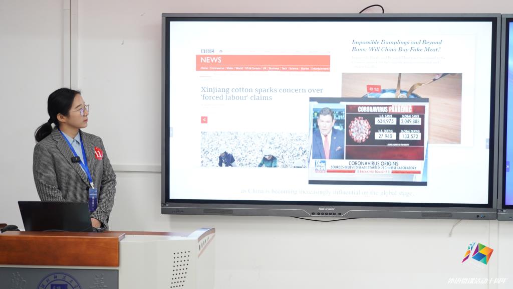 比赛分为微课作品展示和教学设计讲解两个环节。微课作品从美国政客耶伦访华前后鼓吹中国新能源技术“产业过剩”这一真实而富有时代性的新闻话题出发,批驳其谬论,向员工讲授议论文中驳论的写作技巧。在随后的教学设计讲解中,于佳慧以清晰的教学思路、流利的英语表达以及颇具感染力的阐述,展示了微课作品与单元整体的教学设计,最终获得全国一等奖。