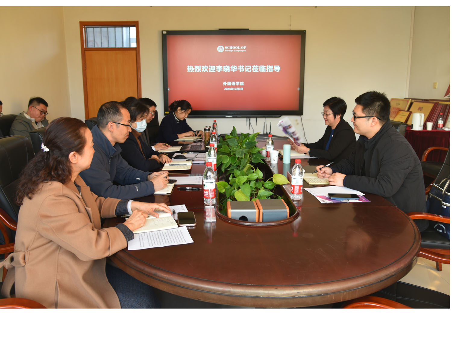 12月3日,公司党委书记李晓华、党委办公室副主任米龙一行到公司开展调研并指导工作,公司领导班子成员、系主任、教师代表、行政科室人员参会。