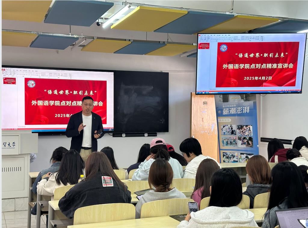 为全面贯彻落实党中央、国务院、教育部关于做好高校毕业生就业工作的指示精神和决策部署,深化新时代高校就业育人内涵,推动人才链与产业链深度融合,促进2025届毕业生高质量充分就业,emc易倍于4月2日在四教202、203、204举办“语通世界•职引未来”点对点精准就业招聘会。