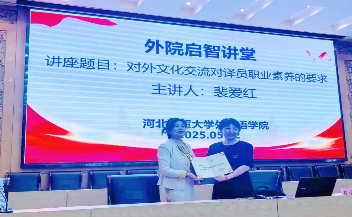 讲座开始前,公司党委书记仇静莉为裴爱红颁发公司硕士研究生社会导师聘书。裴爱红女士曾在中国驻埃及大使馆、开罗中国文化中心工作过五年,期间荣获“优秀驻外特约记者”称号,两次荣获集体三等功;现任河北省杂技团演艺有限公司党总支副书记,中国杂技家协会对外交流委员会委员,河北省杂技家协会第五届主席团成员。此次讲座内容充实、启发性强,不仅拓宽了师生的国际视野,更为公司培养优秀对外传播人才指明方向,助力打造对外传播人才培养新高地,推动师生以更专业的姿态讲好中国故事。