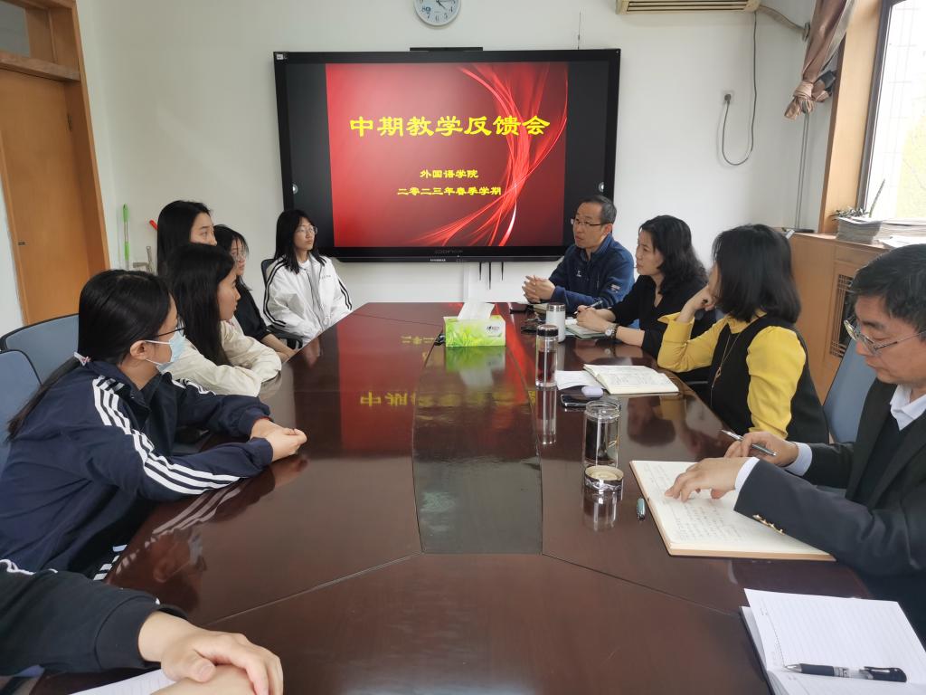 4月10日下午,公司举办本学期中期教学反馈会。会议由教学经理张艳主持,公司党委书记仇静莉、经理张润、副书记刘磊、教务秘书张燕鑫出席,大一至大四年级各班信息员参加。