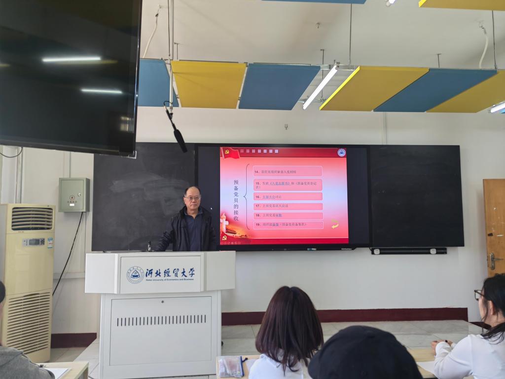 4月14日下午,emc易倍在四教 201 教室举行第 58 期入党积极分子培训开班仪式暨专题党课。本次培训以学习贯彻党的二十大、党的二十届二中、三中全会精神为主线,聚焦 “外语+党建”特色,通过理论与实践相结合的方式,为入党积极分子提供全面、系统的教育培训,旨在增强他们的政治意识、理论素养和实践能力,为党的事业培养更多优秀人才。活动由行政党支部书记田晓光主持,第二员工党支部书记康文霞和第58期全体入党积极分子参加。