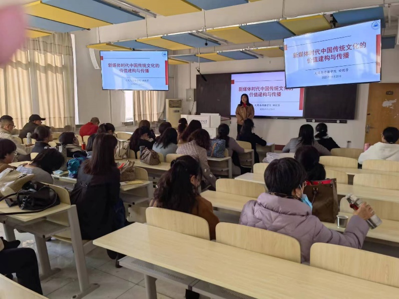 田悦芳教授从时代环境的需求、价值建构的新变、传播态势的转型三方面介绍了中国传统文化的价值建构与传播。她表示,在新媒体时代,信息的公共性、交互性和开放性增强的同时,为了紧跟新财经改革步伐,推动教学与科研创新,我们要关注文化发展前沿动态,积极参加学术会议,加强沟通与交流。她强调在新媒体时代,中国传统文化通过思想、审美等多元价值建构与当代文化传播趋势深度契合,体现了中国传统文化的当代转型与文明传承,更是中华文化“创造性转化、创新性发展”过程中的受众需求和媒体责任,呈现出中国传统文化体系的主导性、开放性和融合性等时代特征。
